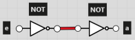 Wenn zwei NOT-Gatter hintereinander geschaltet werden (siehe Bb.4), dann ist der Ausgang a dieser Schaltung immer genau gleich wie der Eingang e. Jedoch wird durch diese Schaltung das Signal verzögert - diese Schaltung wird daher auch „Puffer“ genannt.